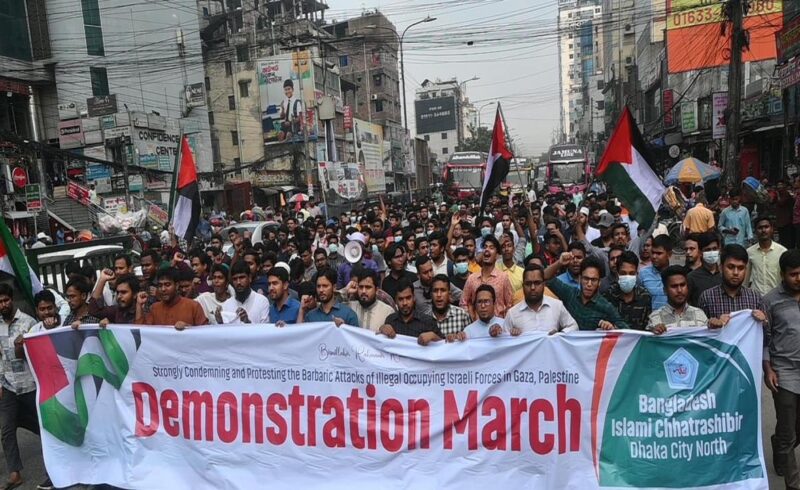 ফিলিস্তিনে ইসরায়েলের হামলার প্রতিবাদে ও আল আকসা মসজিদ রক্ষার দাবিতে ঢাকায় বিক্ষোভ মিছিল ও সমাবেশ করেছে বাংলাদেশ ইসলামী ছাত্রশিবিরি ঢাকা মহানগর উত্তর। সোমবার (১৬ অক্টোবর) সকালে রাজধানীর শাহজাদপুর এলাকায় এ