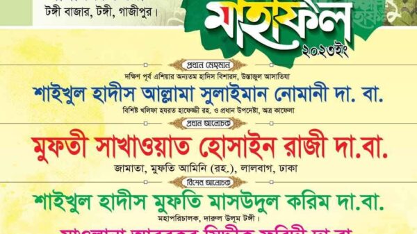 বাংলাদেশ আদর্শিক ছাত্র কাফেলা ও টঙ্গী বাজার ব্যবসায়ীদের উদ্যোগে দ্বিতীয় বার্ষিক ওয়াজ মাহফিলের আয়োজন করা হয়েছে, উক্ত মাহফিলটি আগামী ৫ অক্টোবর ২০২৩ রোজ বৃহস্পতিবার বিকাল ৩ ঘটিকা টঙ্গী বাজার আনারকলি